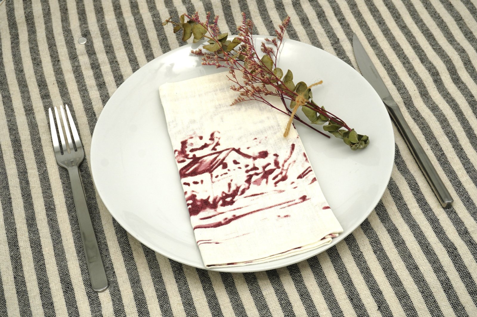 Las servilletas están confeccionadas en lino suave y resistente, perfectas para el uso diario o para vestir la mesa en ocasiones especiales con un toque de identidad y diseño local. Su textura natural y su motivo ilustrado hacen que cada pieza sea funcional y decorativa a la vez.