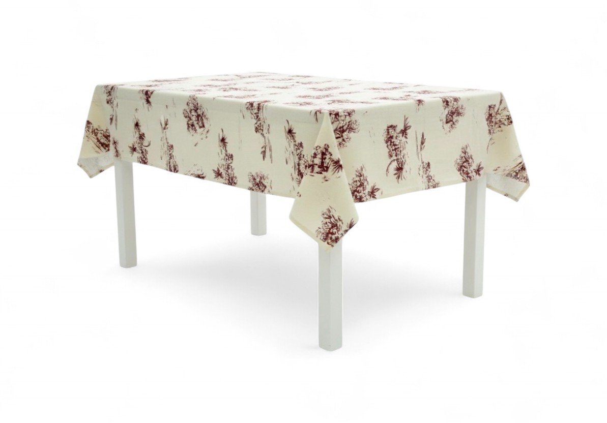 Este mantel rectangular de 150 × 200 cm, ideal para mesas de 6 puestos, está confeccionado en lino natural de textura suave y resistente. Su diseño presenta un estampado en tonos morados que representa chozas típicas colombianas, evocando escenas rurales, vida tranquila y tradición artesanal.