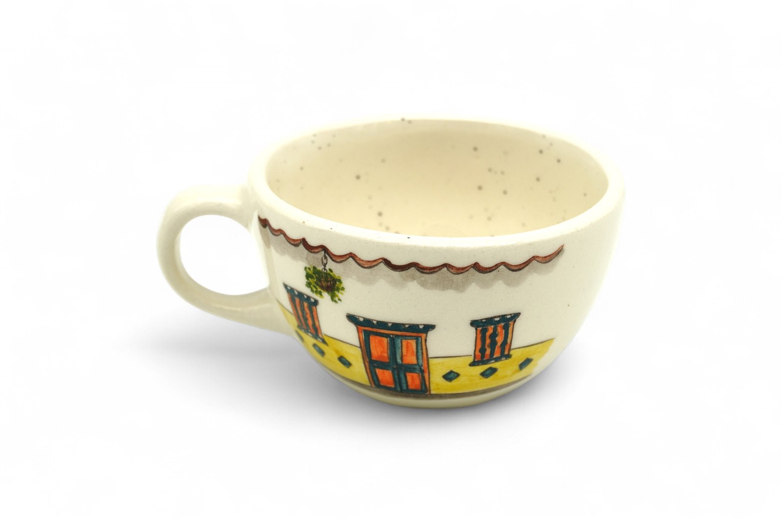 Mug de 12 onzas de cerámica con ilustración inspirada en las coloridas casas coloniales colombianas. Perfecto para disfrutar tu bebida favorita con un toque de identidad y tradición.