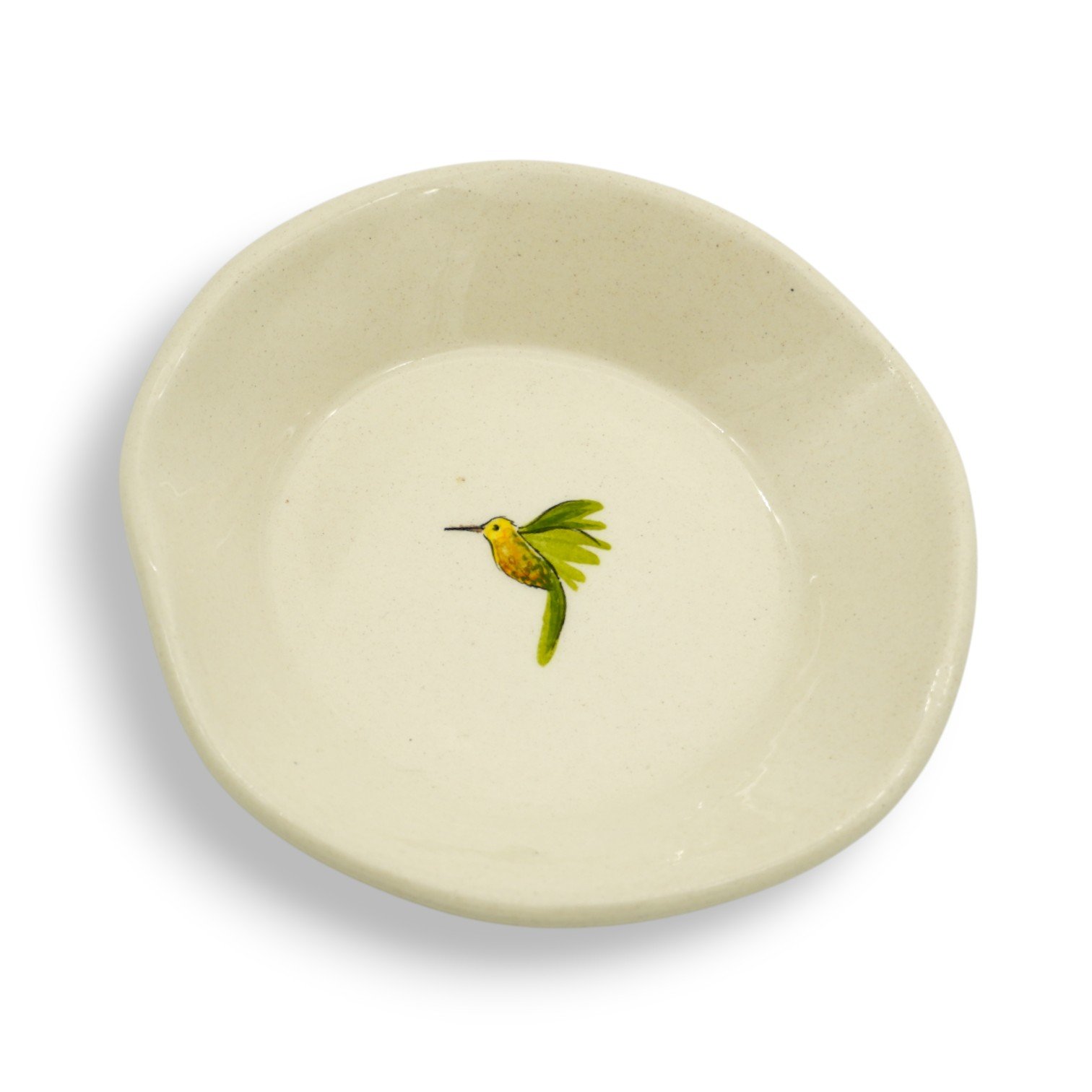 Este platillo decorativo hecho y pintado a mano está inspirado en el colibrí, una de las aves más emblemáticas de Colombia. El país es reconocido mundialmente por albergar una de las mayores diversidades de colibríes, símbolo de energía, color y vida en sus paisajes naturales.