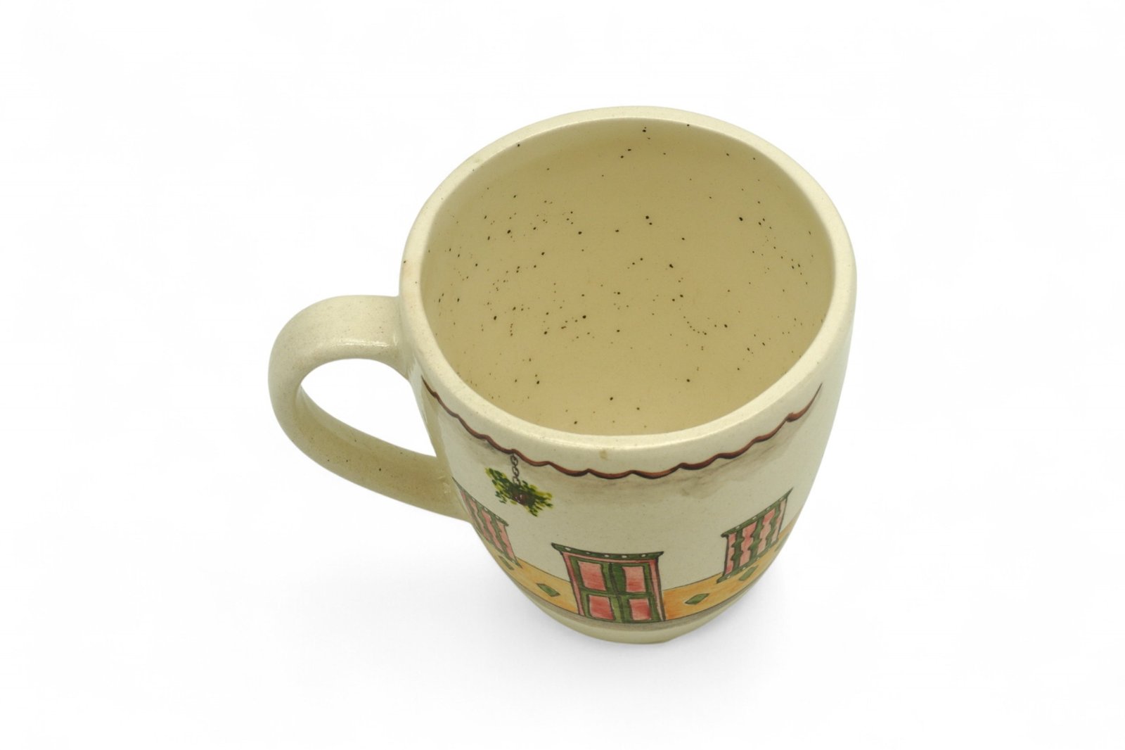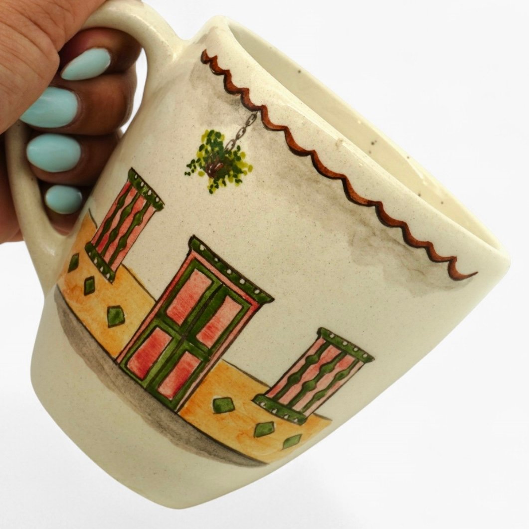 Este pocillo de 8 onzas es un homenaje visual a las casas tradicionales que llenan de color y carácter los pueblos de Colombia. Con su ilustración detallada, evoca fachadas con puertas de madera, balcones florecidos y techos de teja que cuentan historias de generaciones.