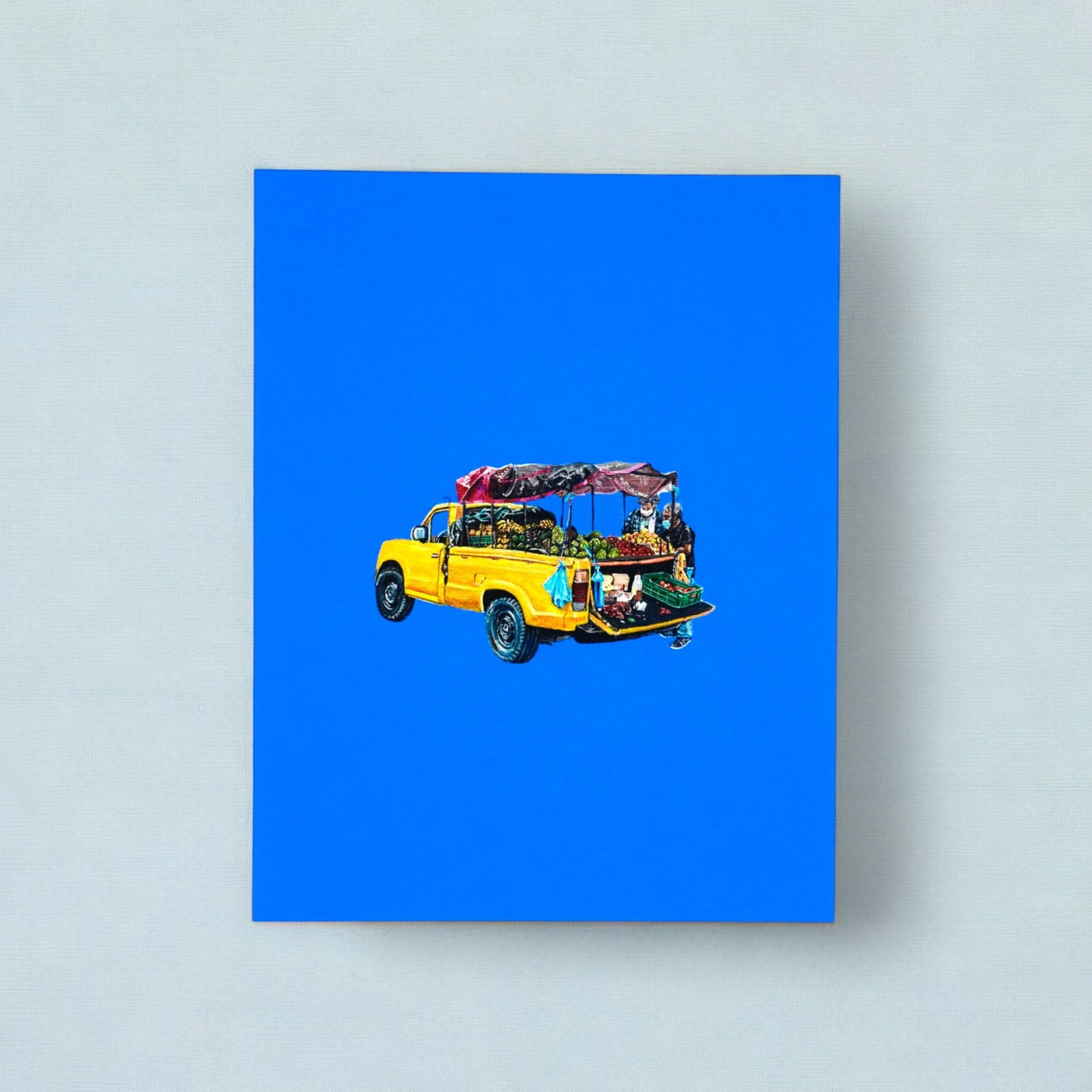 Inspirada en una escena cotidiana de Bogotá, esta obra de Laura Castro Romero retrata una camioneta convertida en puesto de frutas ambulante. Hace parte de la serie “¿Quiénes somos? Retrato social”, donde la artista invita a reflexionar sobre la desigualdad, la informalidad y las realidades que muchas veces normalizamos en el paisaje urbano colombiano.